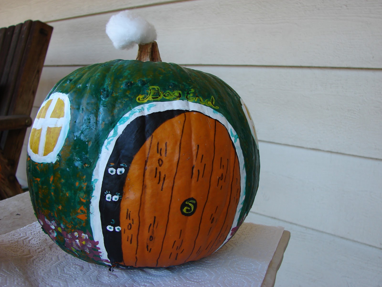 So rather than compete with my mom, who painted her pumpkin as an idyllic, full-color rendition of Bag End, complete with cotton-fluff smoke coming from the chimney…
