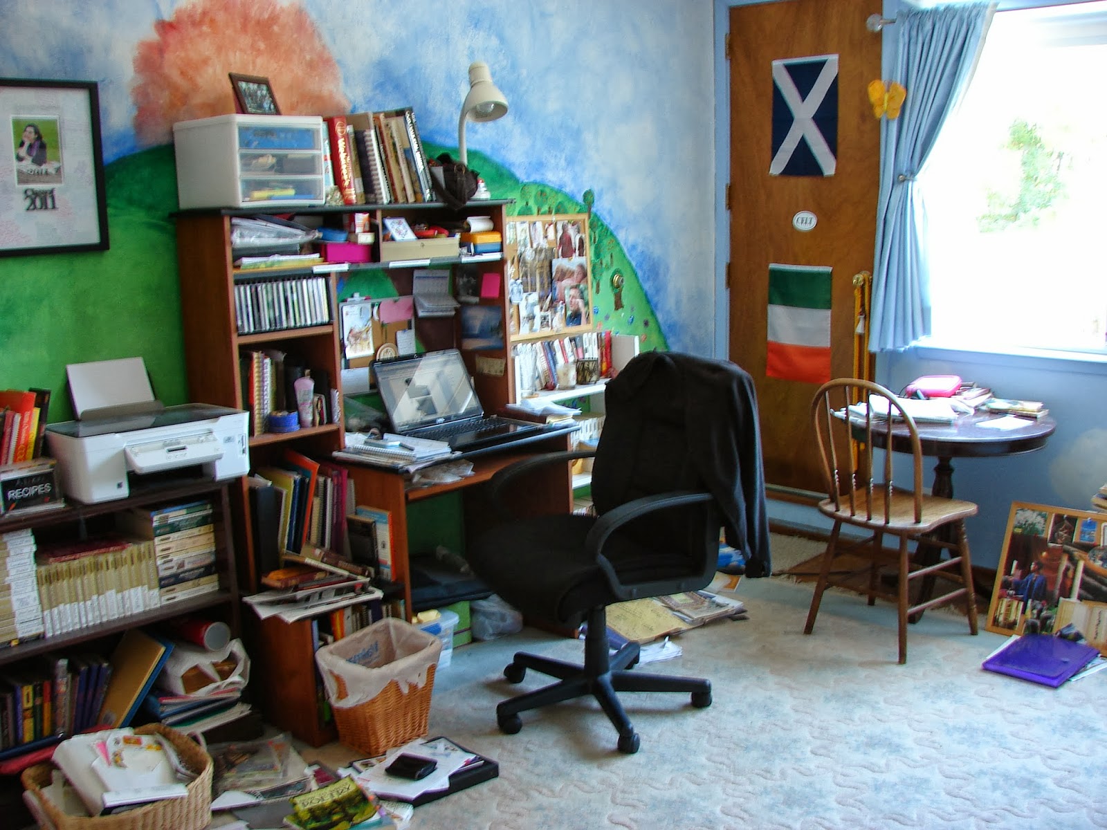 But some of us have other jobs. When I’m not writing, I’m teaching kids to craft paragraphs or fixing people’s grammar. I’d love it if my workspace always looked like this: