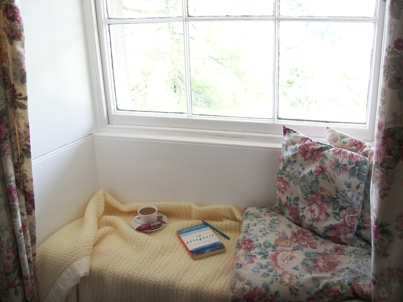 I must have picked up this habit while I was in Britain. I never even liked black tea until I drank it in a window seat overlooking the rugged Welsh countryside. With a book, of course. (That’s Bruce Chatwin’s In Patagonia, if you’re curious.)