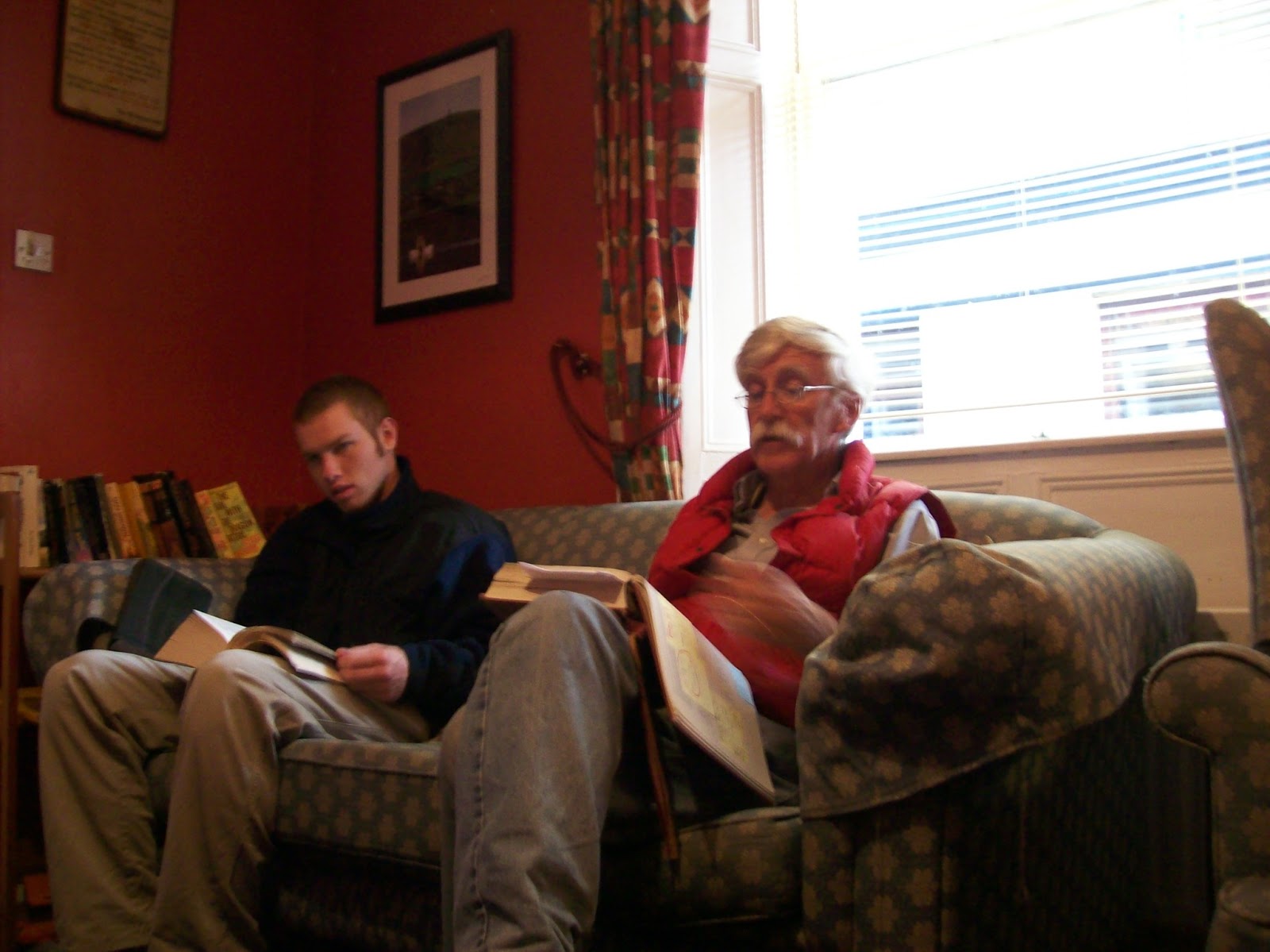 And so Dr. Reinsma began hosting semi-weekly reading sessions. His background is in medieval literature, and he reads fluently in Middle English. And so we students would sprawl all over hostel couches, chairs, benches, carpets (sometimes beside an English fireside so quaint it looked like a painting) and listen to The Professor read.