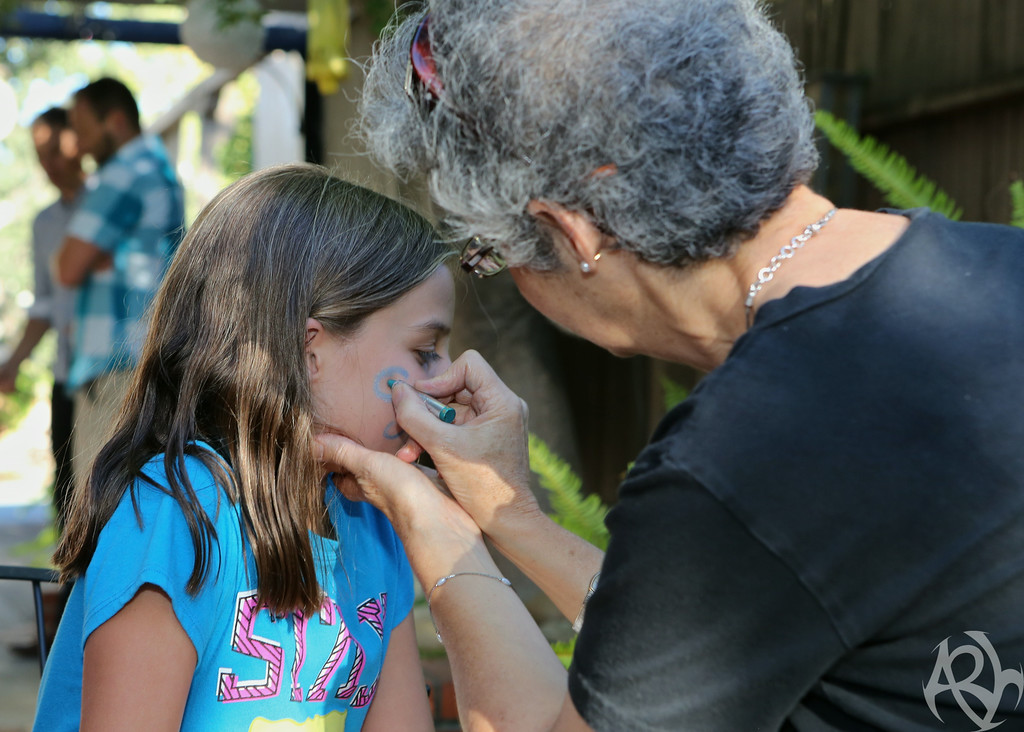 My mom did shiny, swirly face painting, with designs either from the story of The Illuminator’s Gift or inspired by the cover.