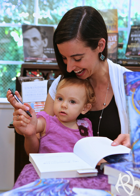 More than one guest arrived in a stroller or baby wrap. These moms are my heroes for starting ’em young. This little charmer was helping me sign books.