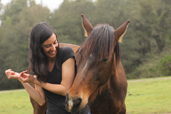 We needed to find horses for the photo shoot, which ended up entailing half an hour of trekking through backwoods trails (don’t worry, we had permission). But when we found them, it was well worth it. One of them tried to eat the golf cart, but this one just wanted carrots. I ended up getting horse cuddles in the bargain.